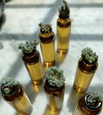 口服液瓶子的大小和形狀,將掉落的葉片放在瓶底的土壤上,很快就會(huì)長(zhǎng)出小芽和根系。簡(jiǎn)直就是為多肉植物量身定做的迷你花房。